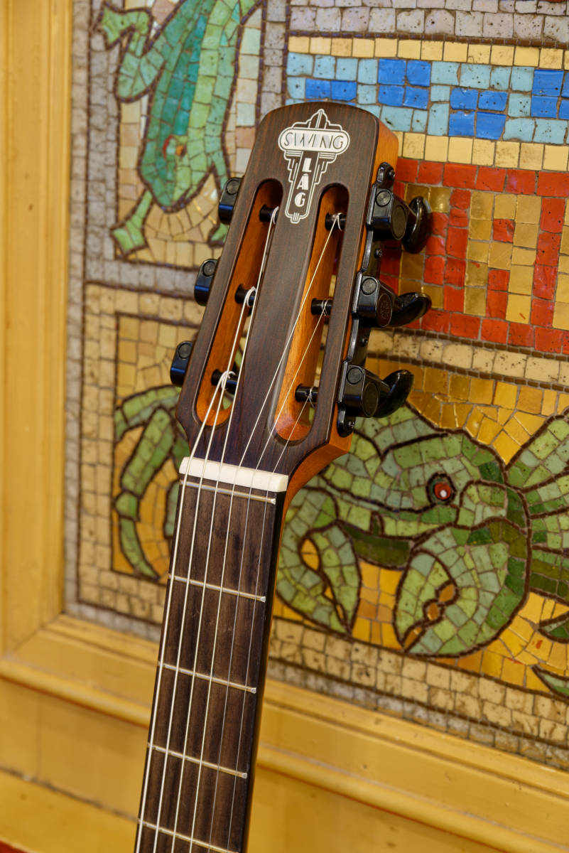 La rose des vents s'intègre parfaitement aux rosaces des guitares Escapade, conçues pour les voyage, par leur format et la résistance des matériaux à toutes épreuves.